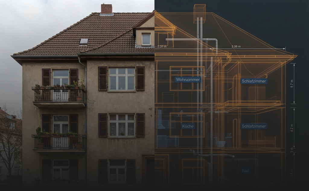 Millimetergenaues 3D Aufmaß in Stunden statt Tagen. Wir erfassen Ihr Gebäude digital – als Grundlage für 2D-Pläne, 3D-Modelle oder BIM. Schneller, genauer und günstiger als manuelles Handaufmaß.