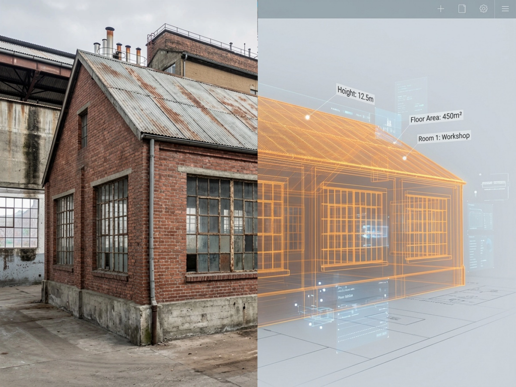 Nachträgliche Digitalisierung. Einmaliger Scan erfasst den Ist-Zustand. Ideal für FM und Sanierung.